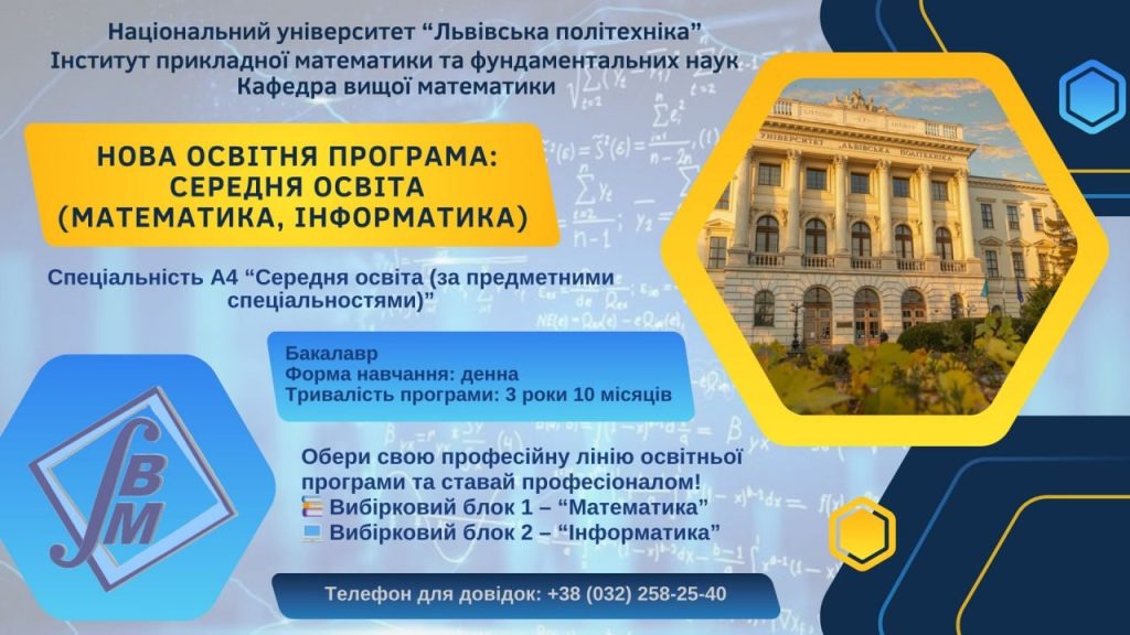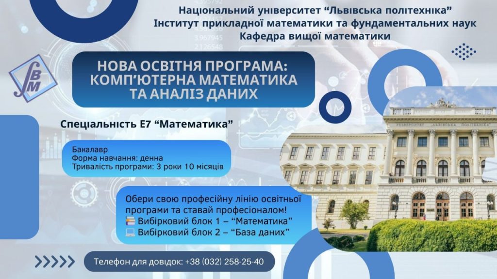 Про програму Це сучасна міждисциплінарна програма, що поєднує глибоку математичну підготовку з навичками програмування, аналізу даних та машинного навчання. Студенти вивчають сучасні інструменти (Python, R, SQL, TensorFlow), працюють над реальними проєктами, проходять стажування в ІТ-компаніях і готуються до кар’єри у сфері Data Science, фінансів, штучного інтелекту та наукових досліджень. Ідеально підходить для тих, хто любить […]
